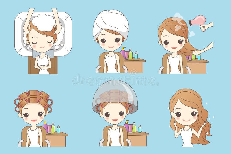 wash the hair, rinse the hair and dries the hair